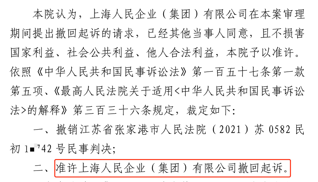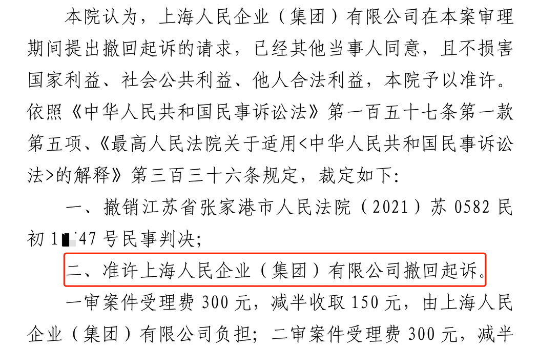 延安胜诉佳讯 | 人民企业系列案苏州六案上海人民公司撤诉