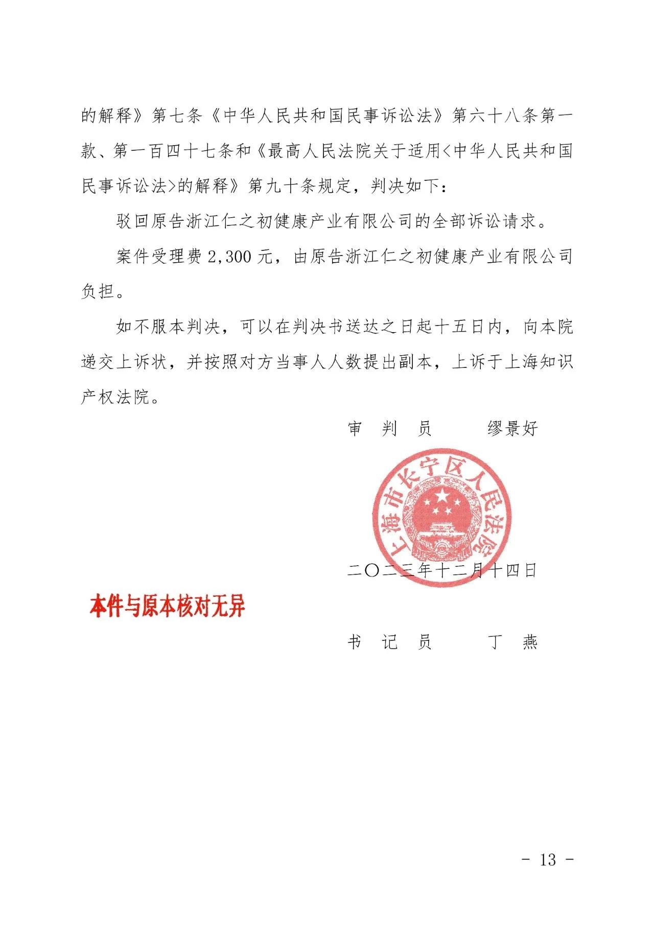 延安辉知胜诉佳讯 | “仁之初健康”著作权及不正当竞争纠纷案,法院:驳回全部诉讼请求!